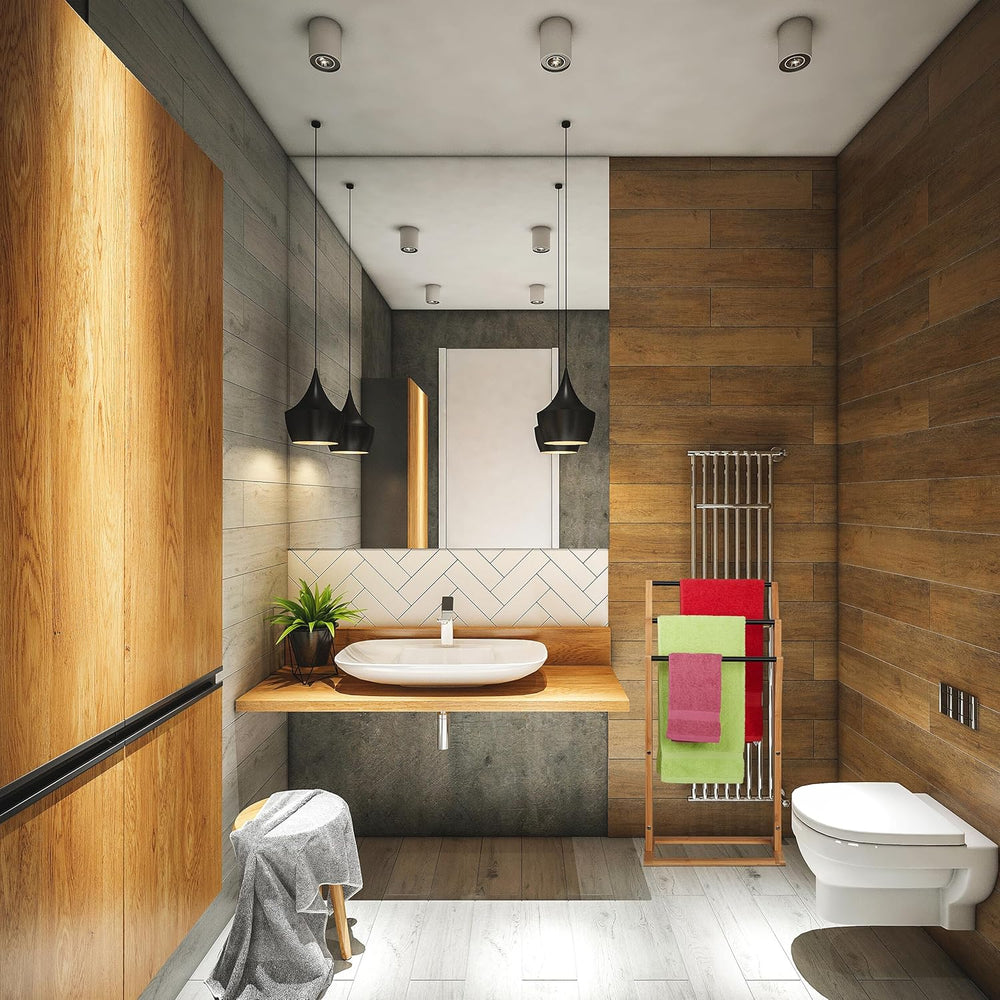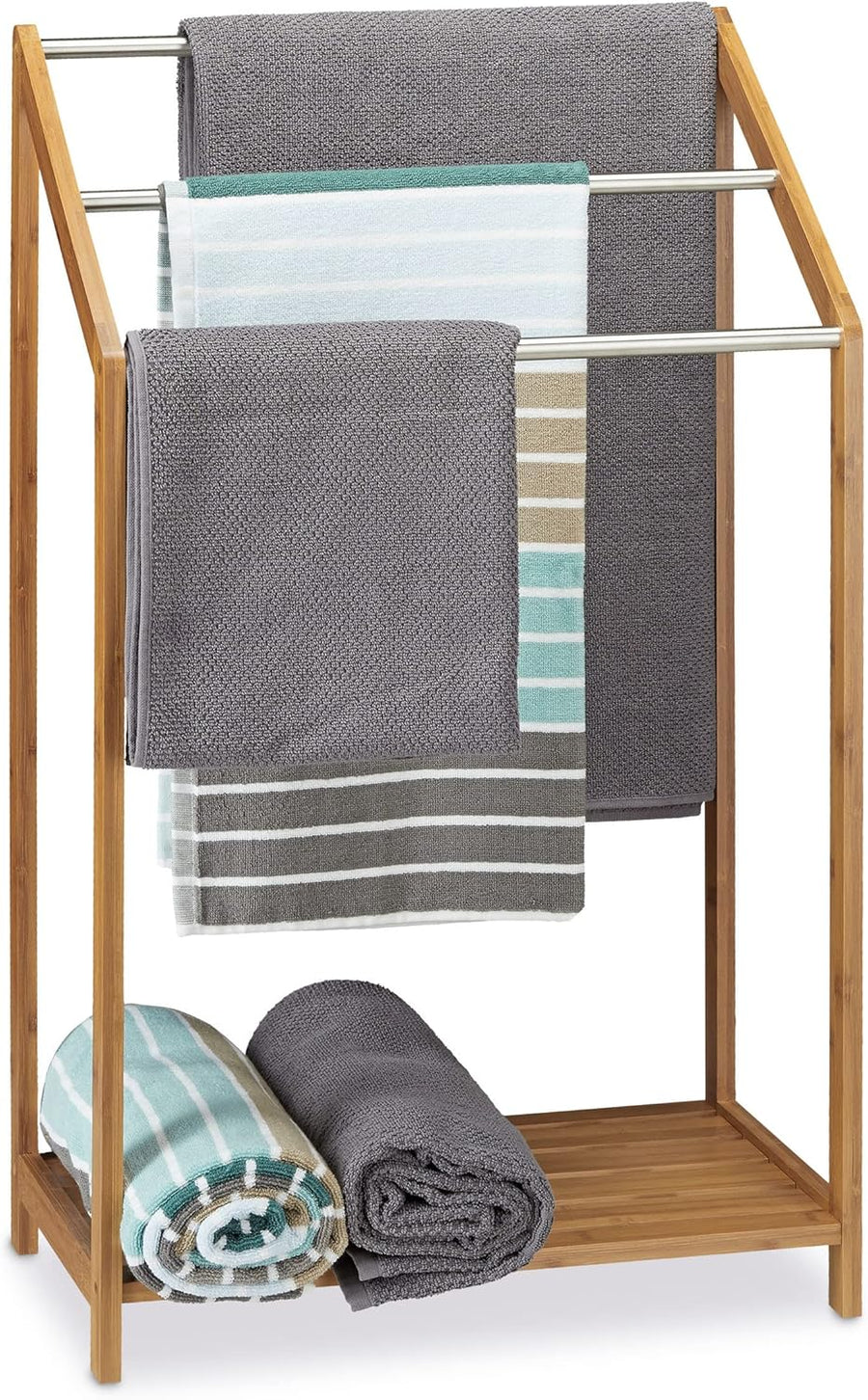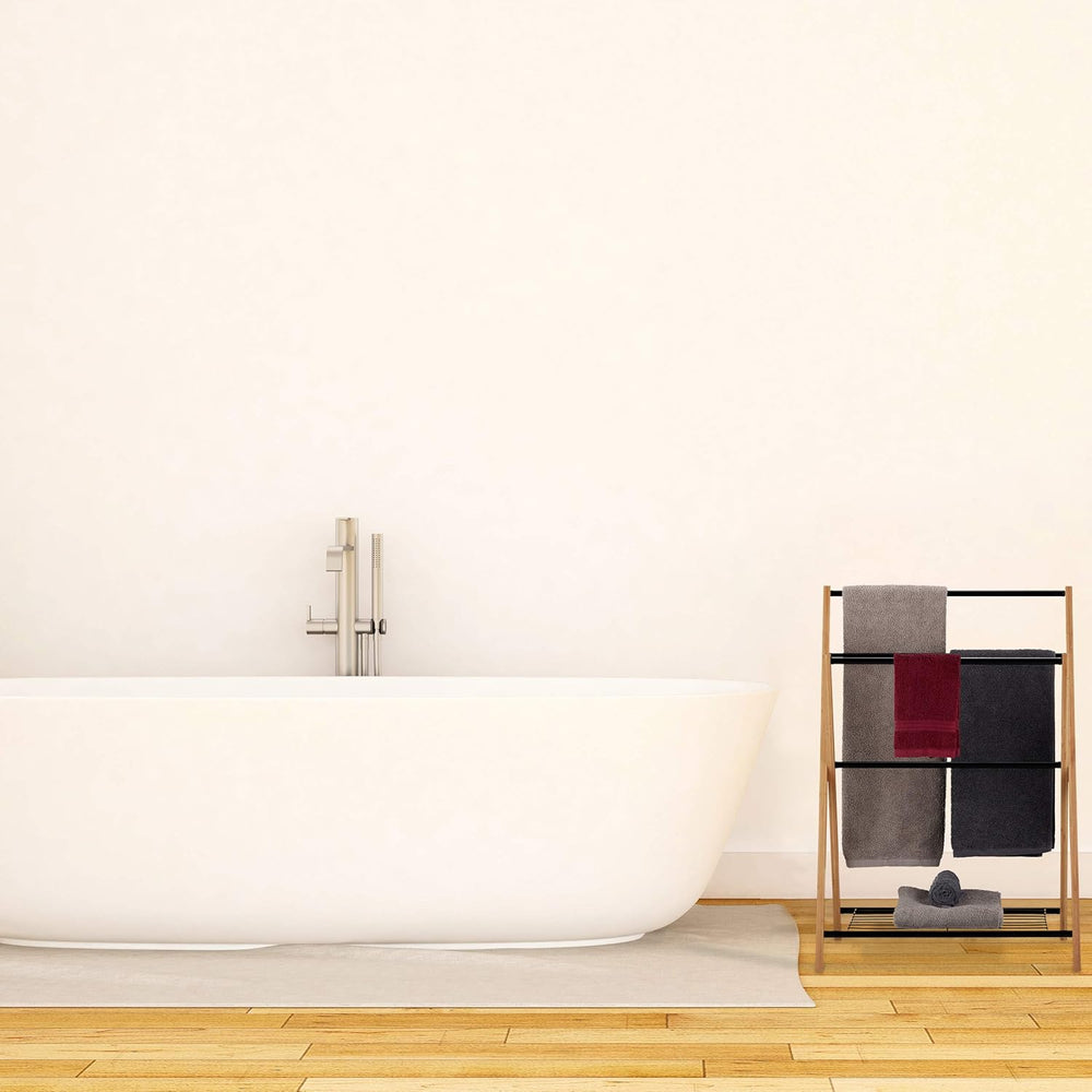 Relaxdays Handtuchhalter Bambus, 152 x 53 x 31 cm & Bambus treppenförmiger Handtuchhalter mit 3 Hand