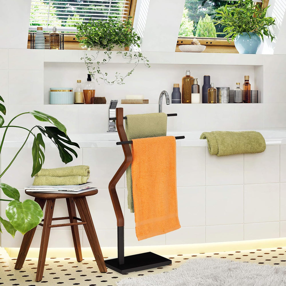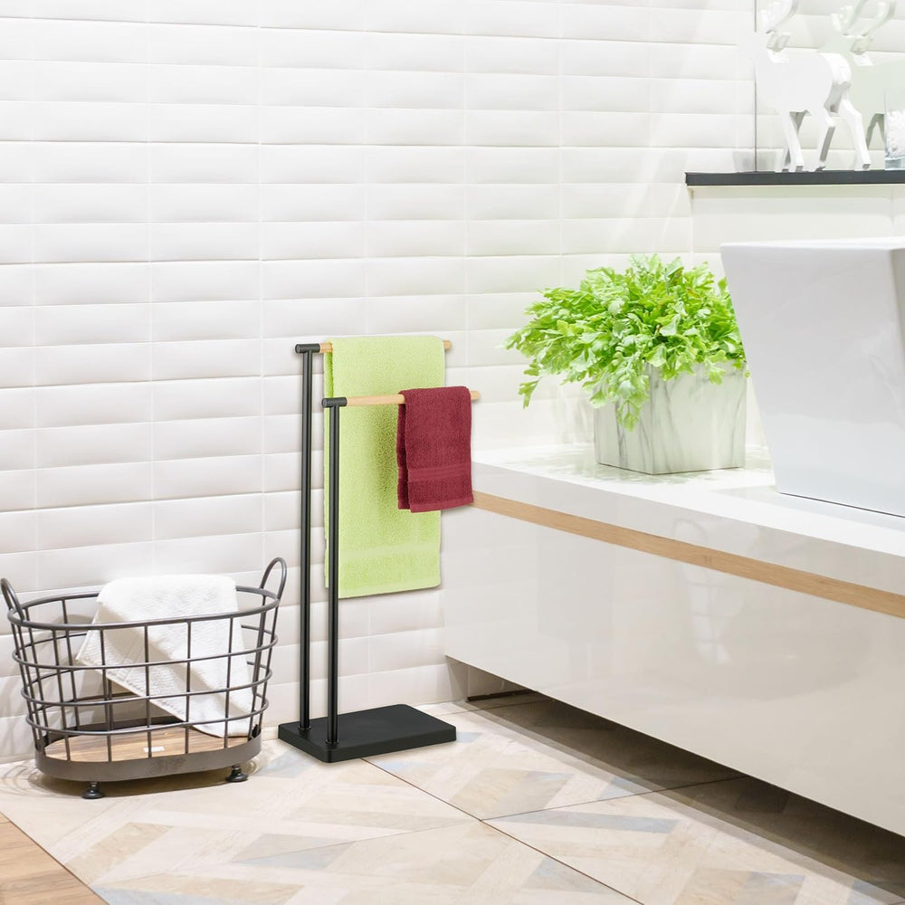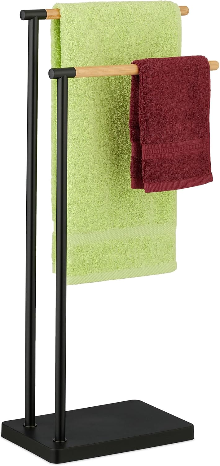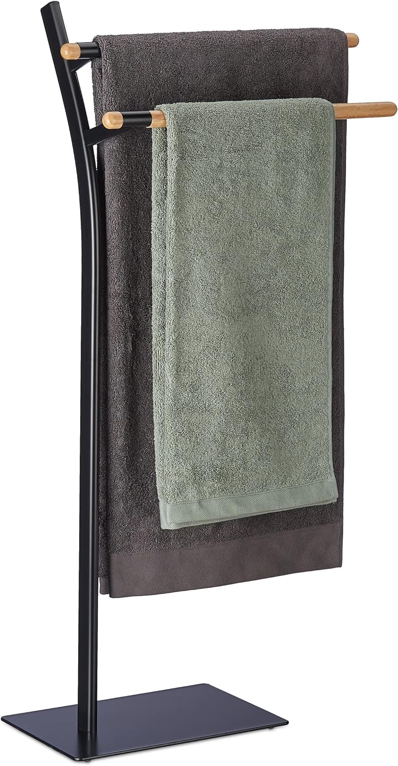 Relaxdays Handtuchhalter stehend PAGNONI, Handtuchständer 2-armig, HBT 78 x 46 x 20 cm, Standhandtuc