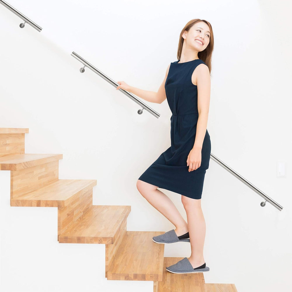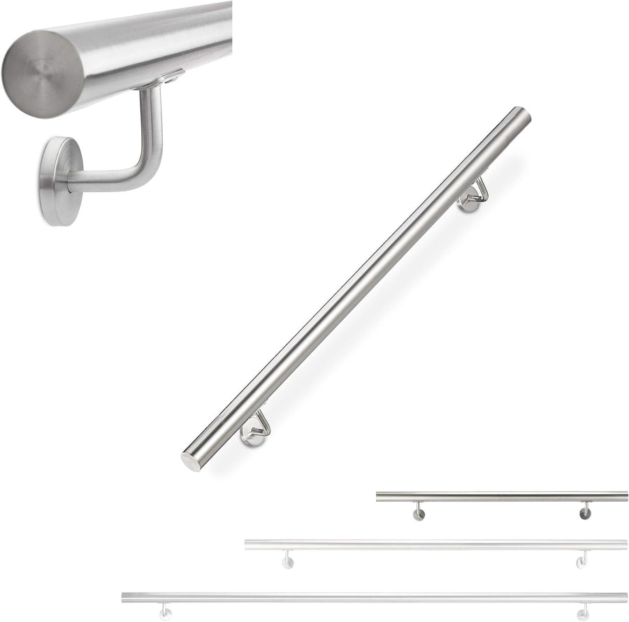 Relaxdays Handlauf, 304er Edelstahl, matt, rundes Treppengeländer, innen & aussen, 100 cm, Ø 42 mm,