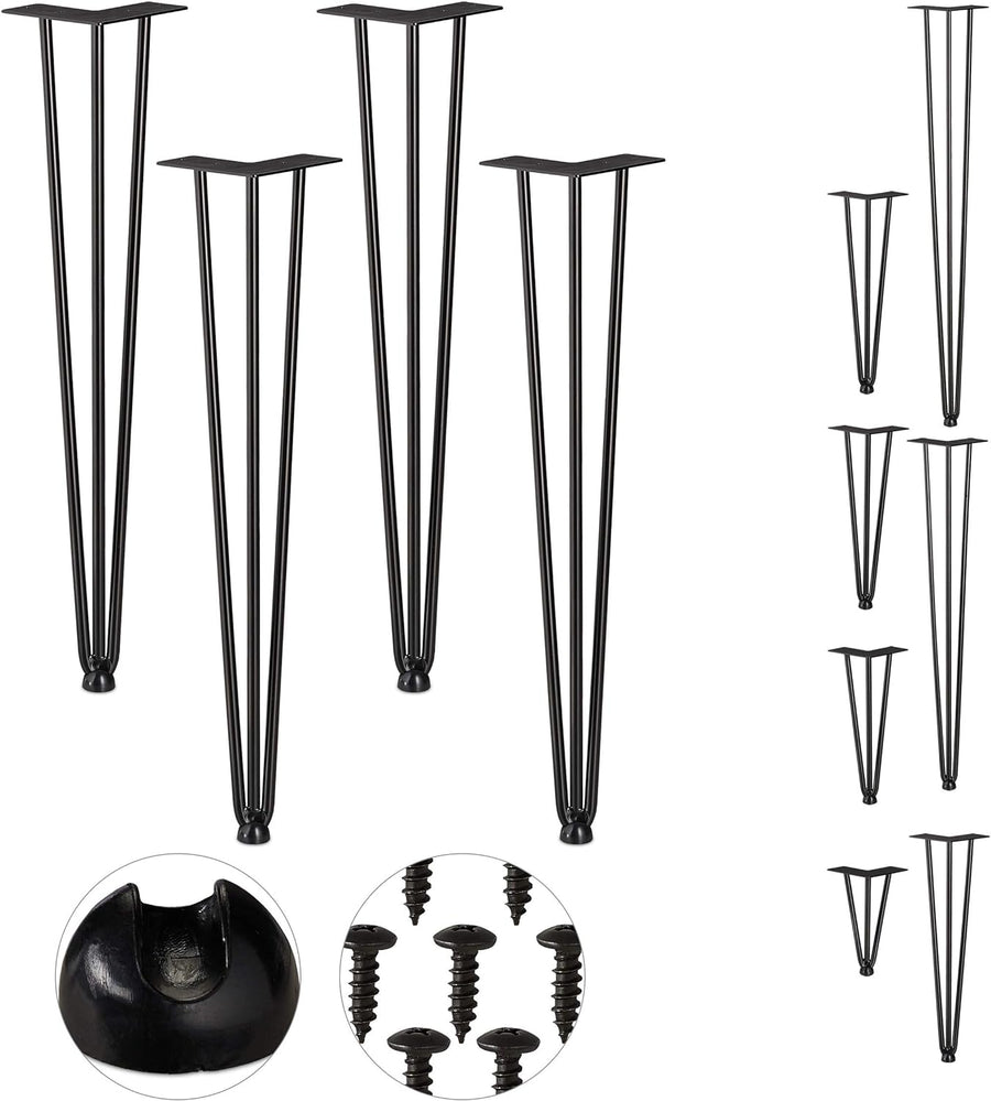 Relaxdays Hairpin Legs, 4er Set, 3 Streben, Metall, Haarnadel Tischbein für Hocker, Tisch & Schrank,