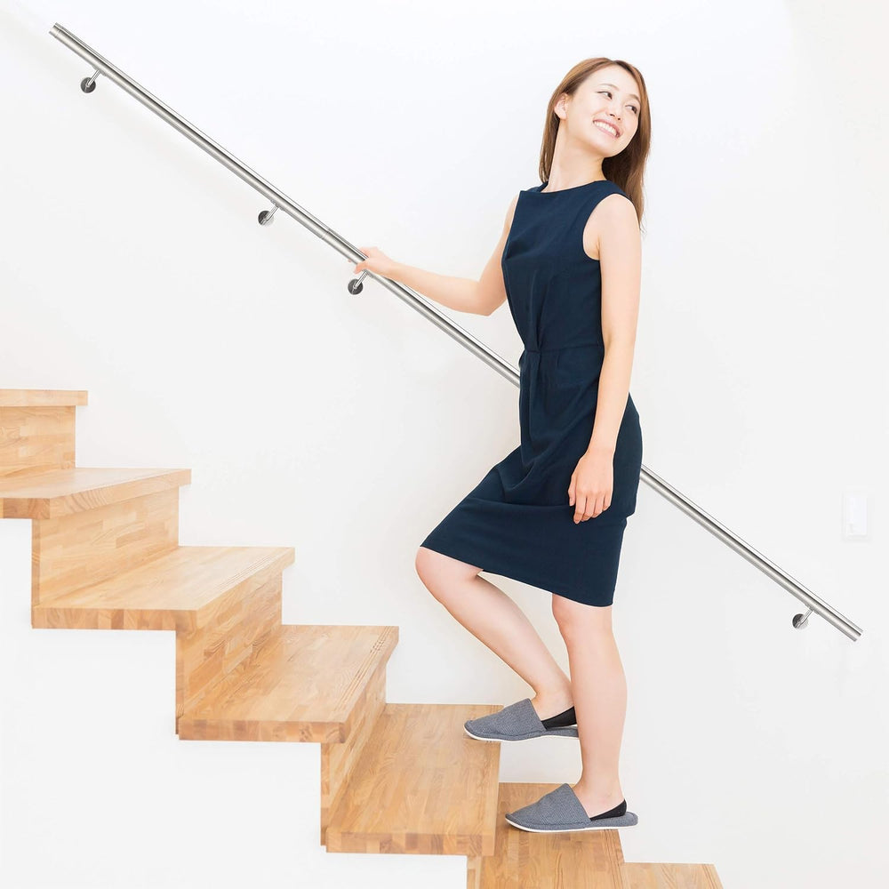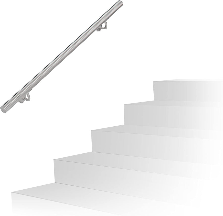 Relaxdays Handlauf, 201er Edelstahl, matt, rundes Treppengeländer, innen & aussen, 150 cm, Ø 38 mm,
