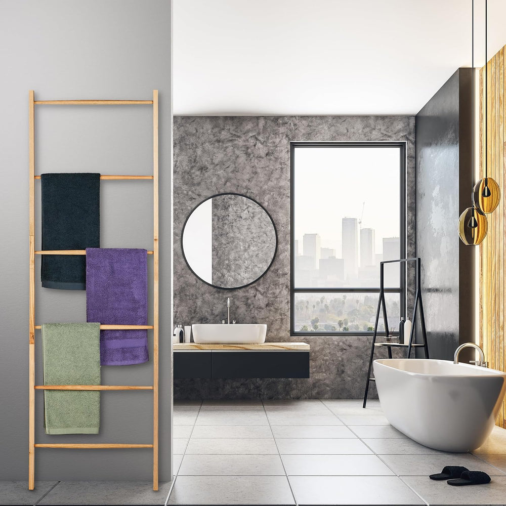 Relaxdays Handtuchleiter Holz, 6 Sprossen, Wäscheleiter Handtücher & Kleidung, HxB 170 x 55 cm, Bade