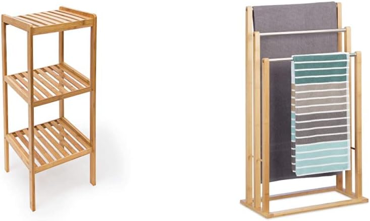 Relaxdays Handtuchhalter stehend mit 3 Handtuchstangen, natur, 26 x 48 x 84 cm & Badregal Bambus mit
