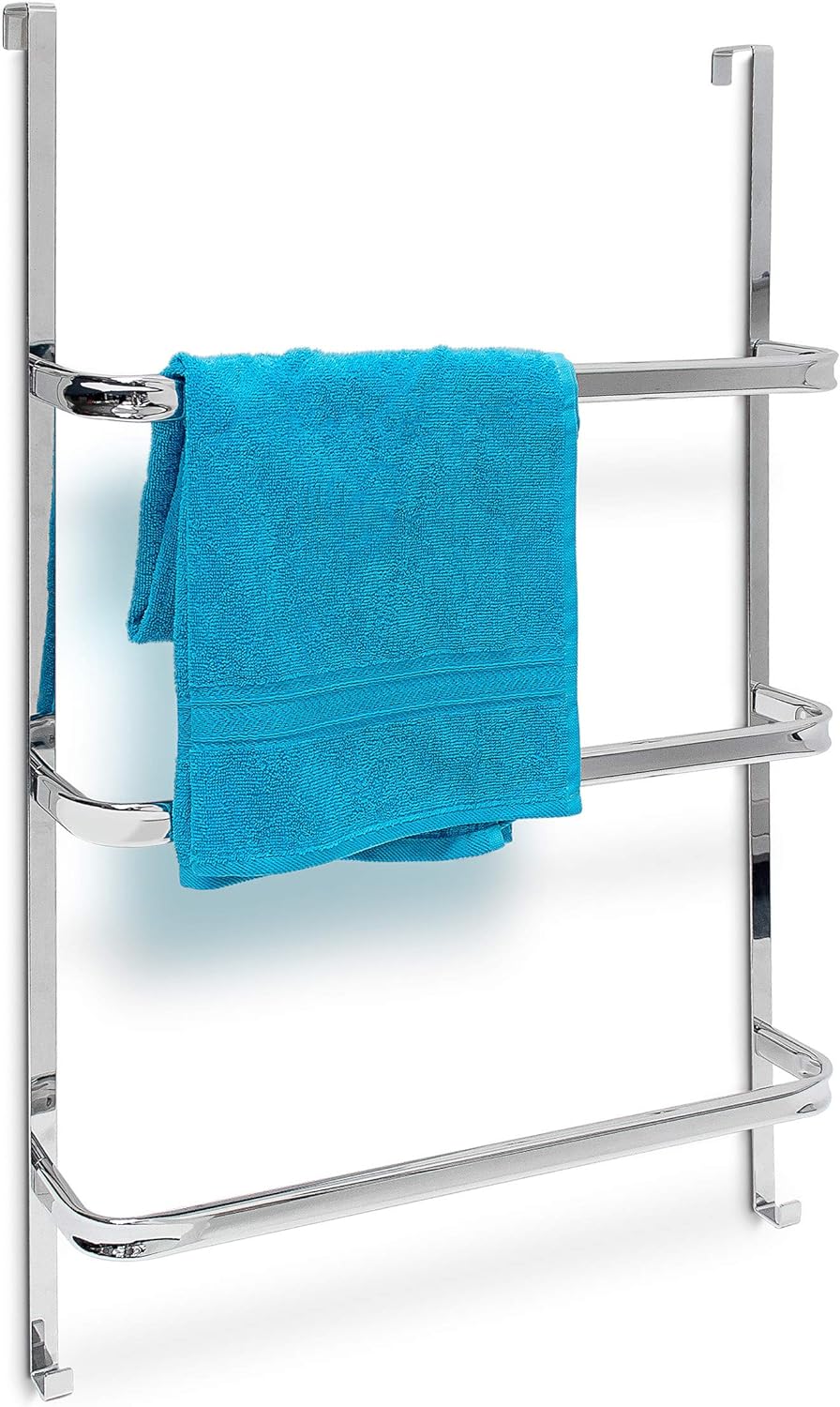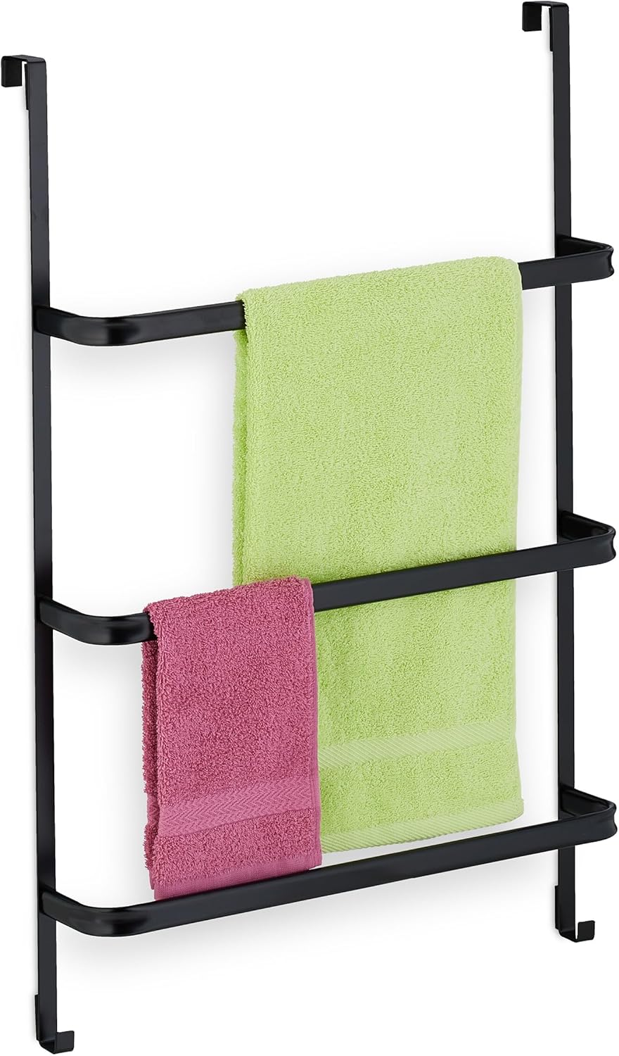 Relaxdays Handtuchhalter Tür, ohne Bohren, 3 Stangen & 2 Haken, HxBxT: 85 x 54,5 x 15 cm, Badetuchha