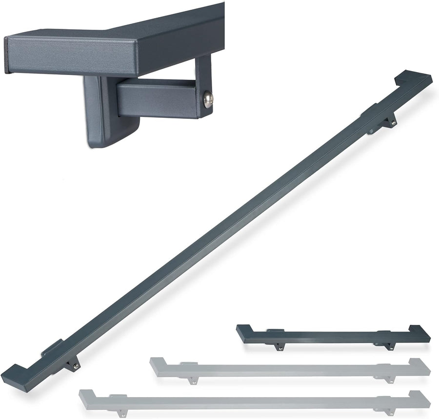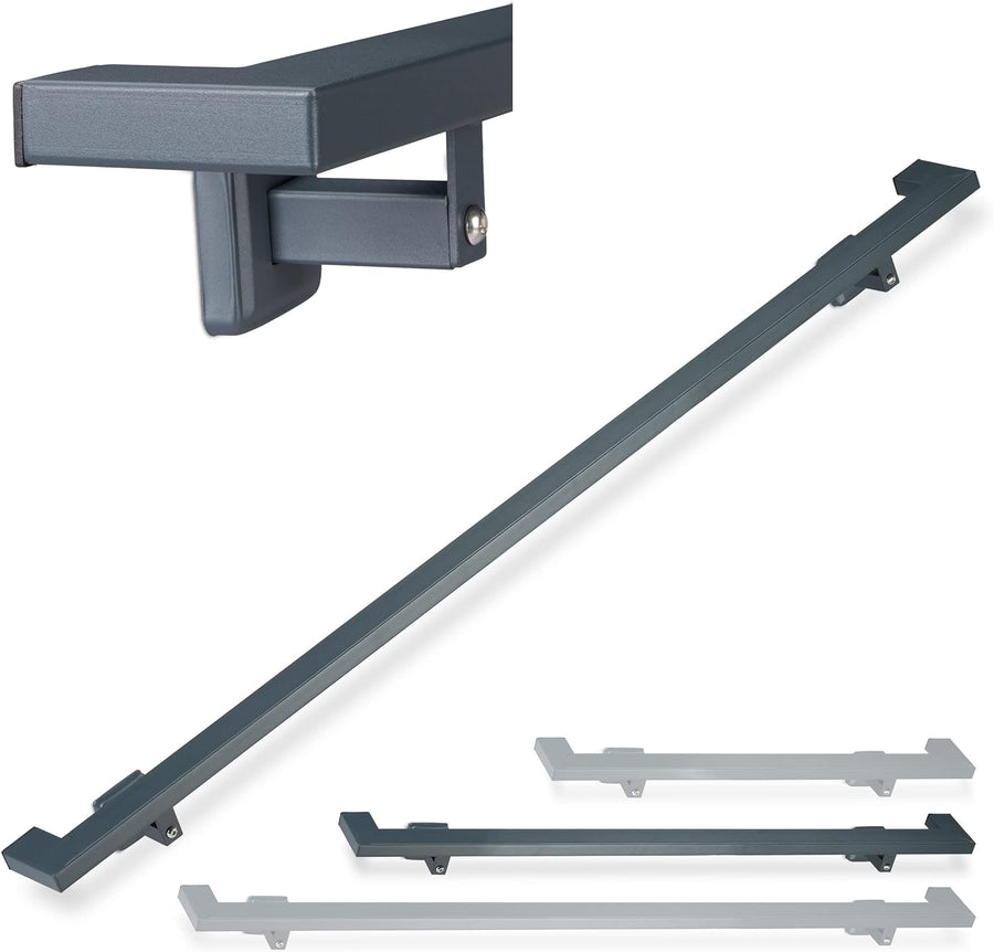 Relaxdays Handlauf eckig, matt, Treppengeländer innen, 100 cm, Treppenhandlauf mit Wandhalterung, mo