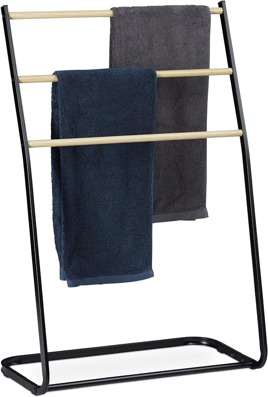 Relaxdays Handtuchhalter stehend, Metall, 3 Sprossen in Holzoptik, für Handtücher & Kleidung, HxBxT