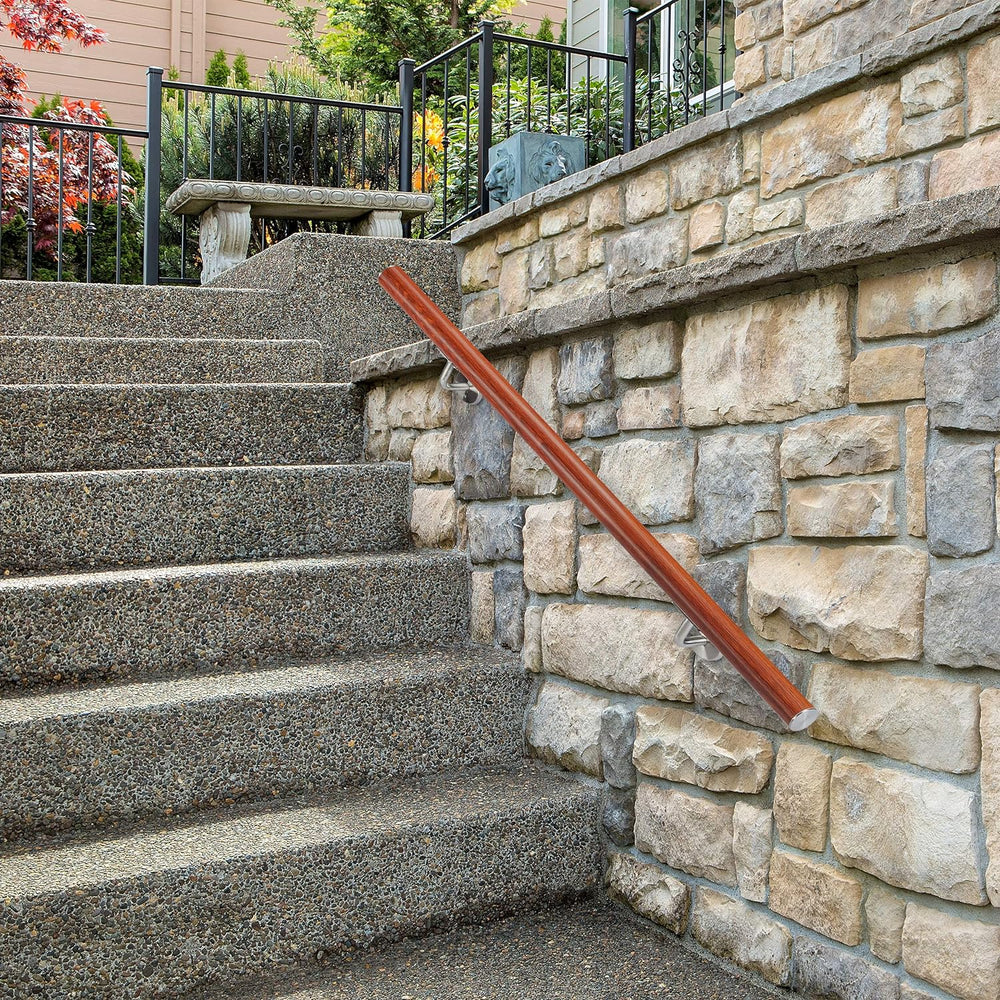 Relaxdays Handlauf Aluminium, rund, Treppengeländer innen, aussen, Eiche-Optik, 100 cm, Ø 42mm, mit