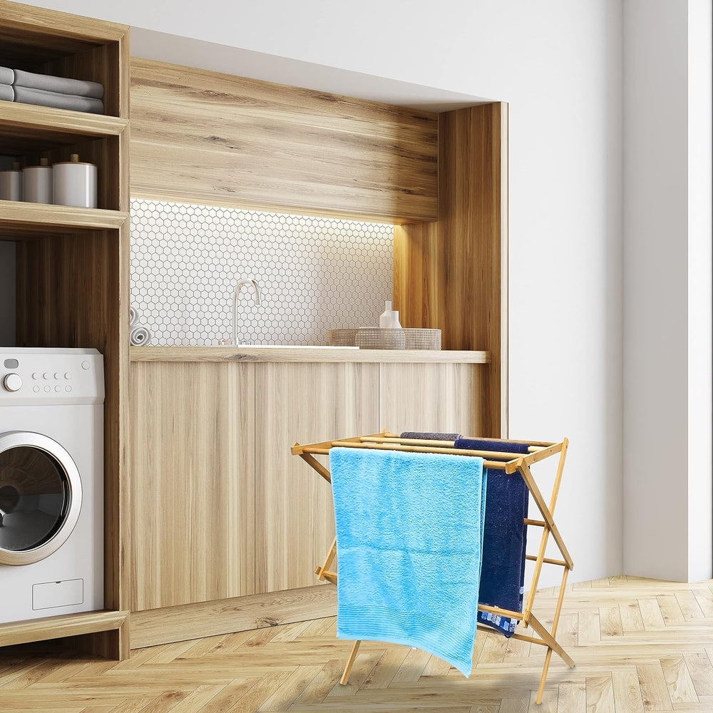Relaxdays Handtuchhalter Bambus faltbar HBT 73 x 74 x 36 cm klappbarer Handtuchständer aus Holz mit