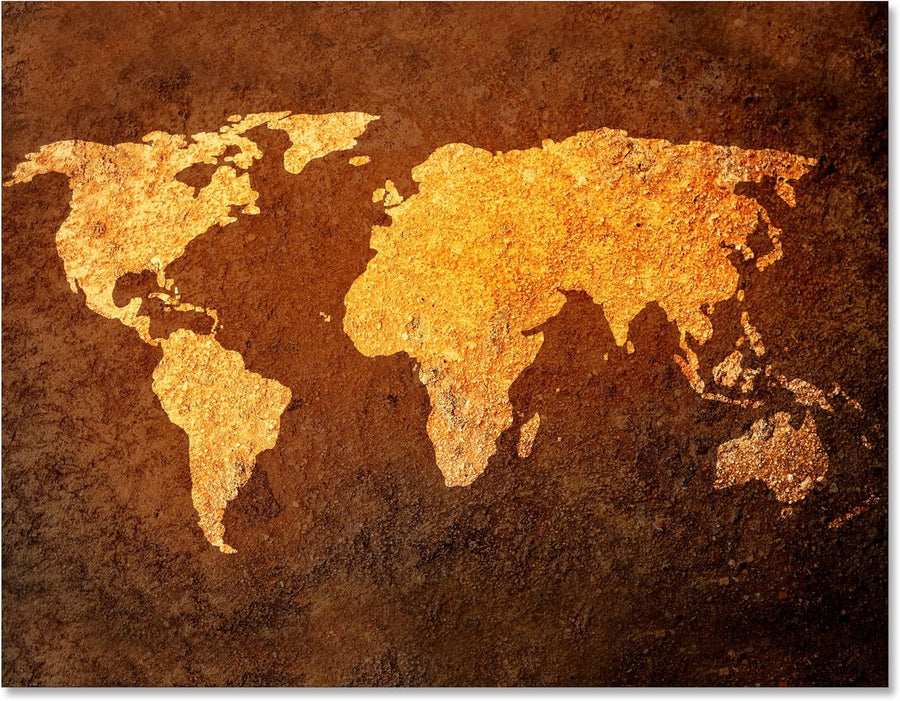 wandmotiv24 Weltkarte auf Leinwand, Grösse 60x45cm Querformat, Landkarte Gold, Braun, Textur, golden