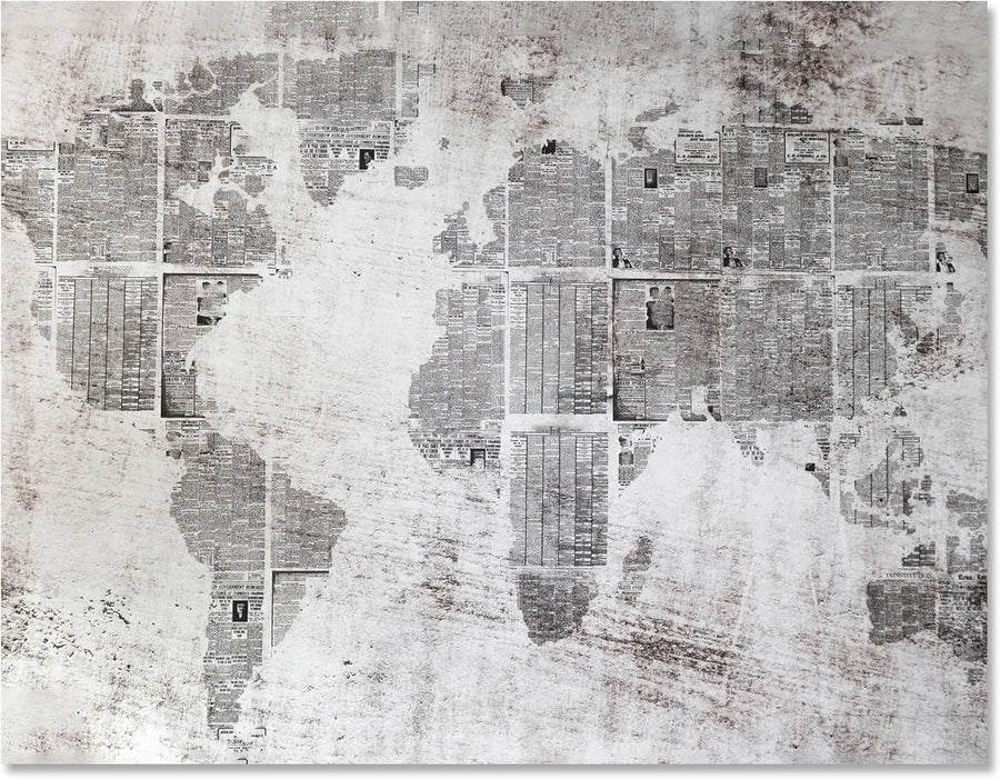 wandmotiv24 Weltkarte auf Leinwand, Grösse 100x75cm Querformat, Zeitungen, News, Zeitung, Beton, Gru