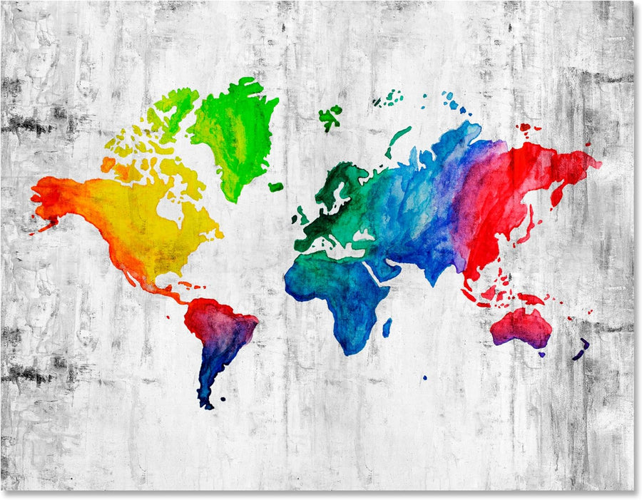 wandmotiv24 Weltkarte auf Leinwand, Grösse 60x45cm Querformat, Bunte Landkarte, Pastellfarben, Beton