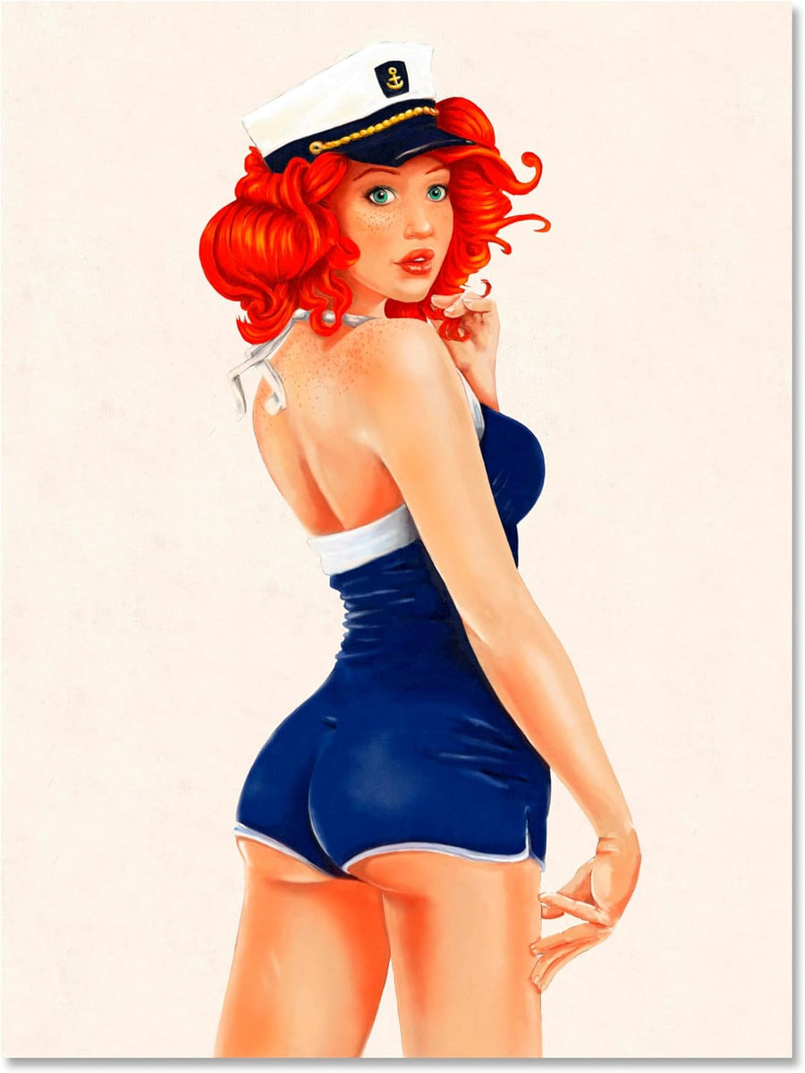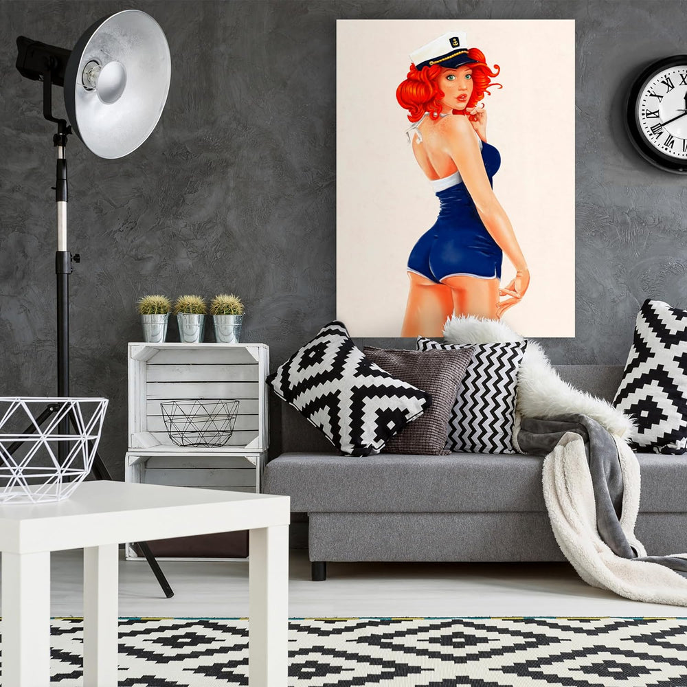 wandmotiv24 Vintage Motive als Leinwandbild, Grösse 60x45cm Hochformat, Sexy Matrosin, Uniform, Kapi