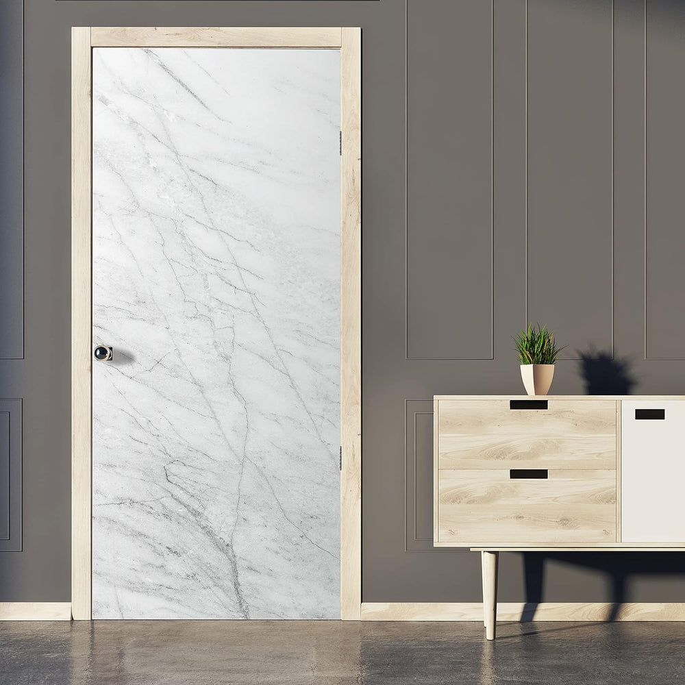 wandmotiv24 Türtapete weisser Marmor, Naturstein, Stein, Muster 90 x 200cm (B x H) - Dekorfolie selb