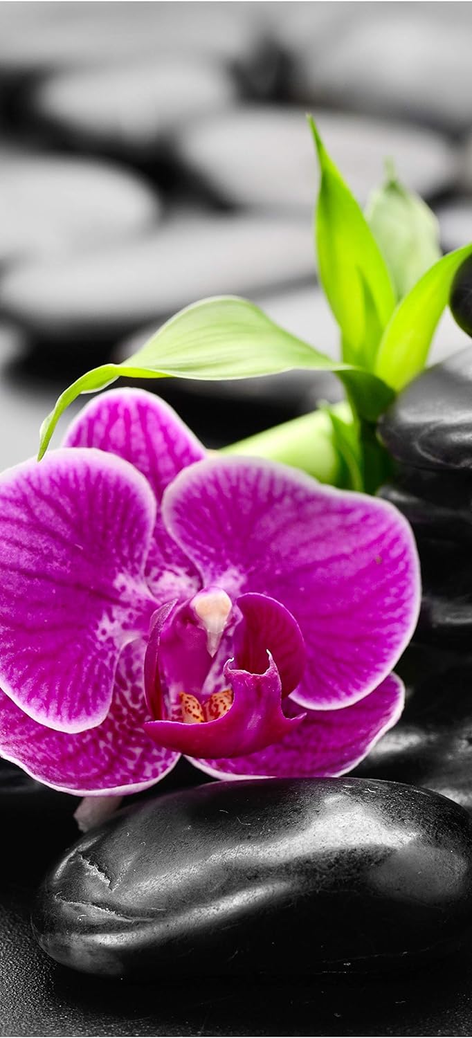 wandmotiv24 Türtapete Zen Basaltsteine und Orchidee 90 x 200cm (B x H) - selbstklebende Strukturtape