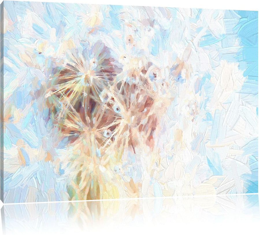 Pixxprint Pusteblumen im morgendlichen Wind Kunst Pinsel Effekt, Format: 100x70 auf Leinwand, XXL ri