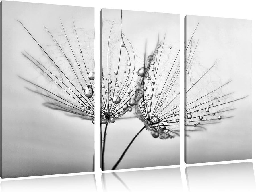 Pixxprint Pusteblumen mit Tautropfen als Leinwandbild/Grösse: 3 Teilig (120x80) cm/Wandbild/Kunstdru