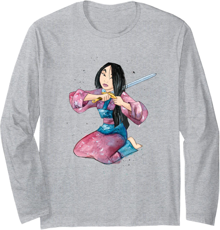 Disney Mulan Haircut Watercolor Style Portrait Langarmshirt