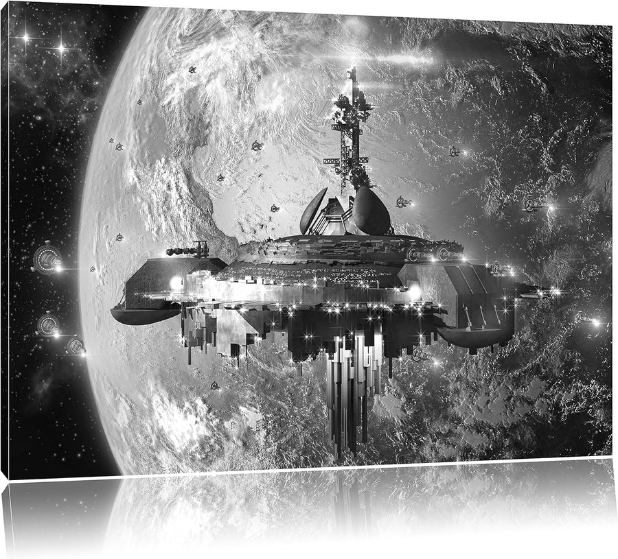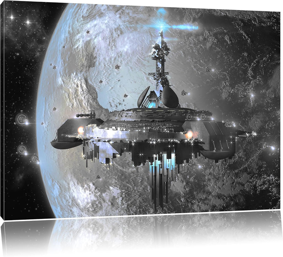 Pixxprint Raumschiff vor der Erde als Leinwandbild/Grösse: 100x70 cm/Wandbild/Kunstdruck/fertig besp