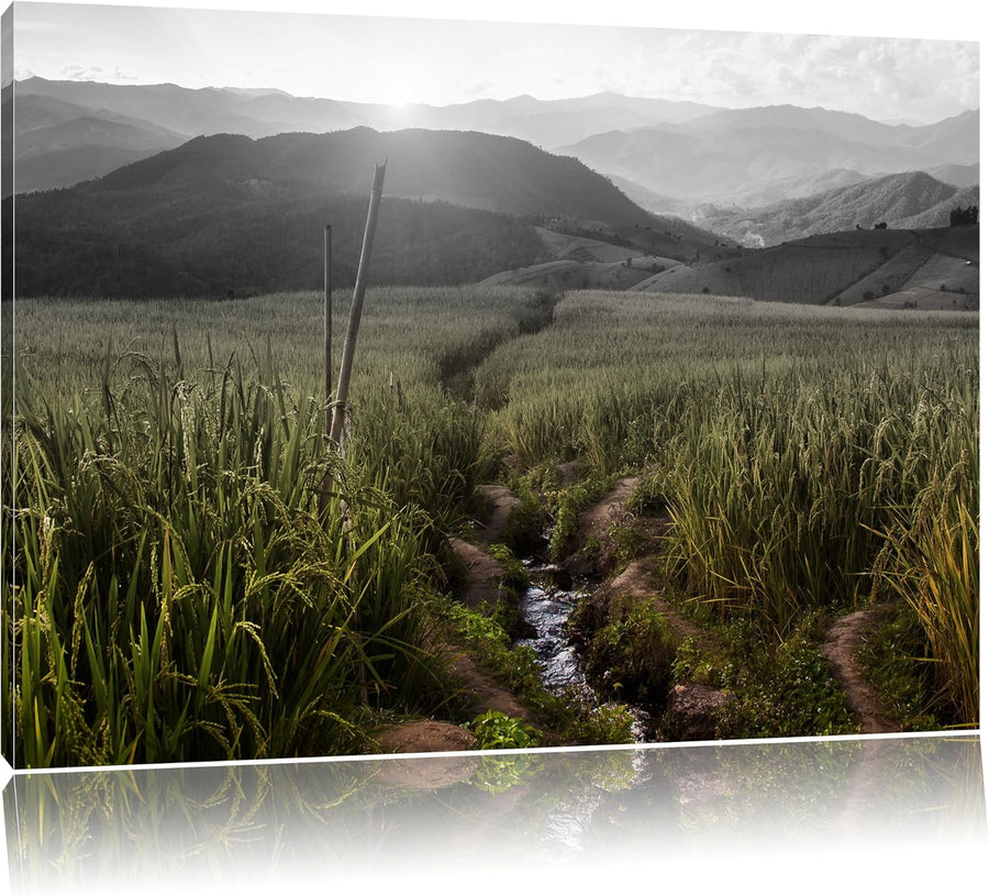 Pixxprint Reisfeld Plantage in Asien als Leinwandbild/Grösse: 100x70 cm/Wandbild/Kunstdruck/fertig b