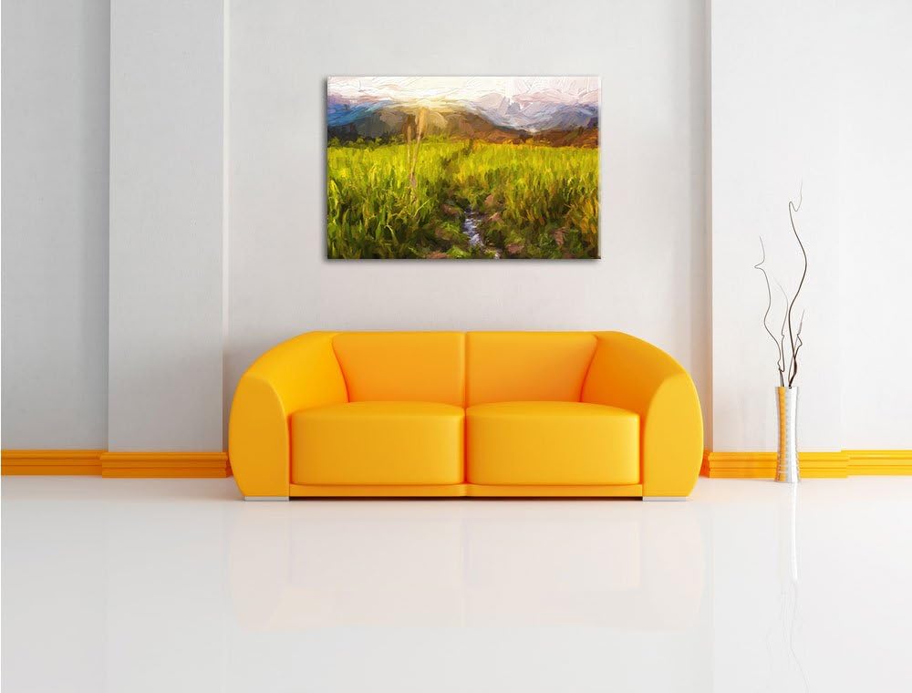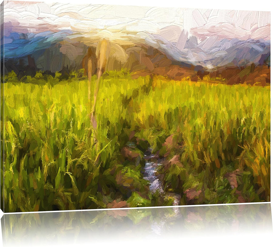 Pixxprint Reisfeld Plantage in Asien Kunst Pinsel Effekt, Format: 100x70 auf Leinwand, 100x70