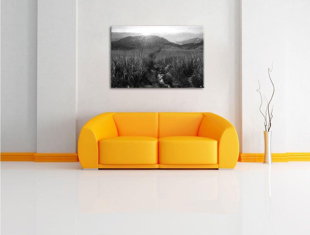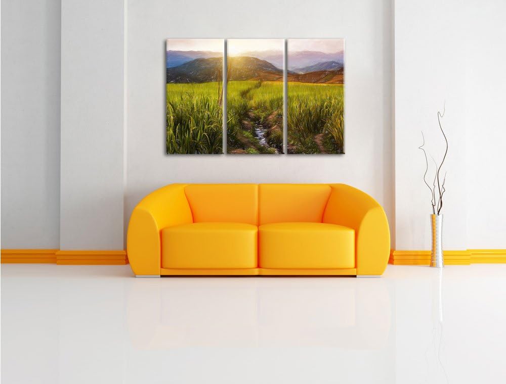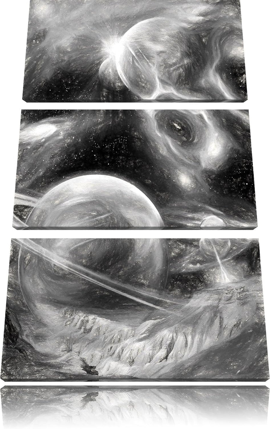 Pixxprint Raum Landschaft Kunst Kohle Effekt 3-Teiler Leinwandbild 120x80 Bild auf Leinwand