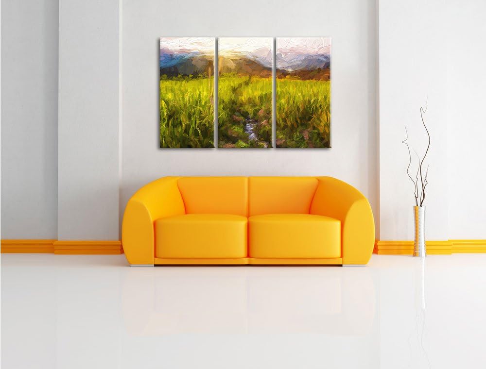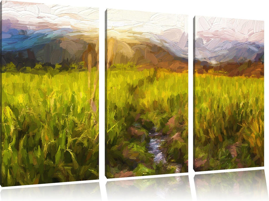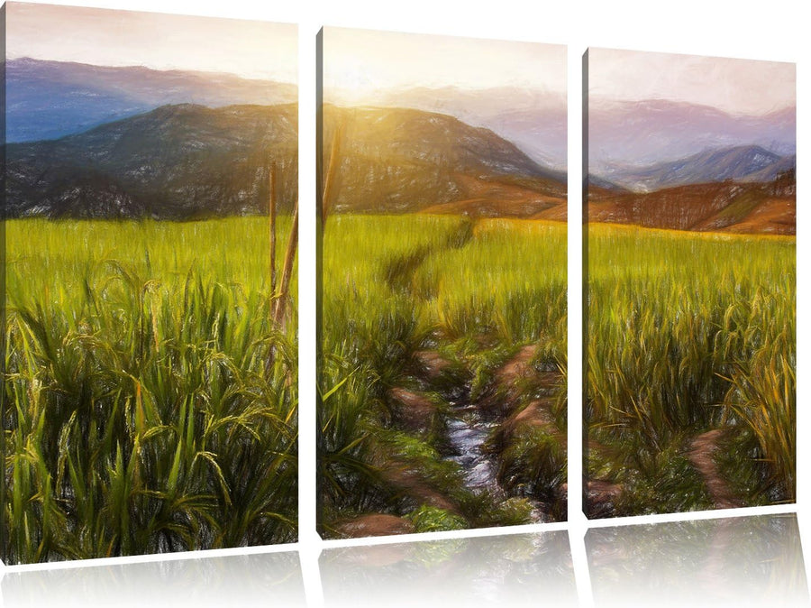 Pixxprint Reisfelder in Vietnam Kunst Pinsel Effekt 3-Teiler Leinwandbild 120x80 Bild auf Leinwand