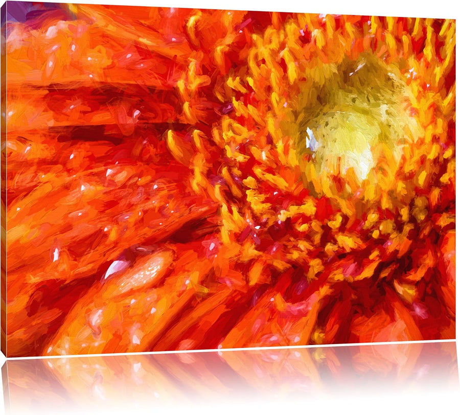 Pixxprint Red Flower Gerbera als Leinwandbild/Grösse: 100x70 / Wandbild/Kunstdruck/fertig bespannt,
