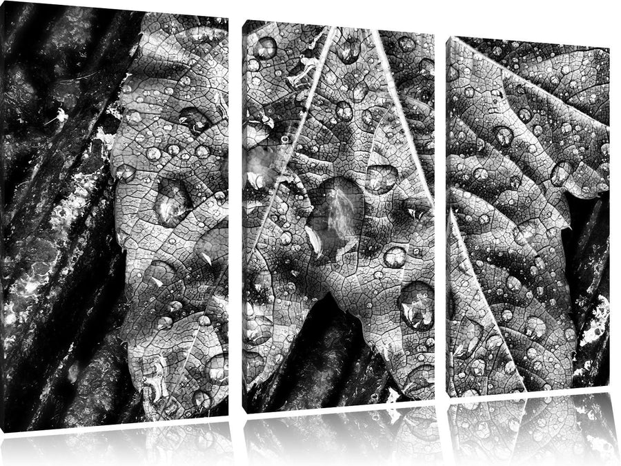 Pixxprint Regentropfen auf Blatt als Leinwandbild/Grösse: 3 Teilig (120x80) / Wandbild/Kunstdruck/fe
