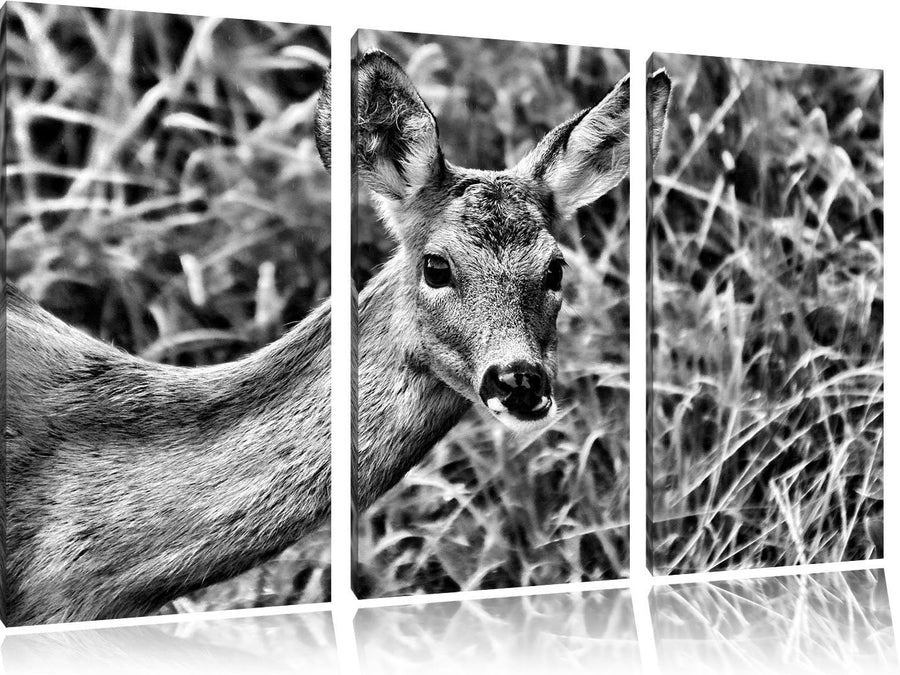Pixxprint REH beim Fressen als Leinwandbild/Grösse: 3 Teilig (120x80) cm/Wandbild/Kunstdruck/fertig
