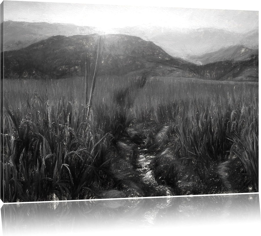 Pixxprint Reisfeld Plantage in Asien Kunst Kohle Effekt, Format: 100x70 auf Leinwand, 100x70