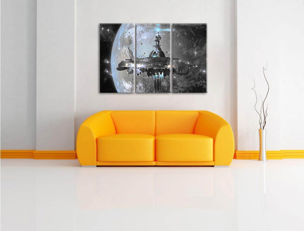 Pixxprint Raumschiff vor der Erde als Leinwandbild | Grösse: 3 Teilig (120x80) | Wandbild| Kunstdruc