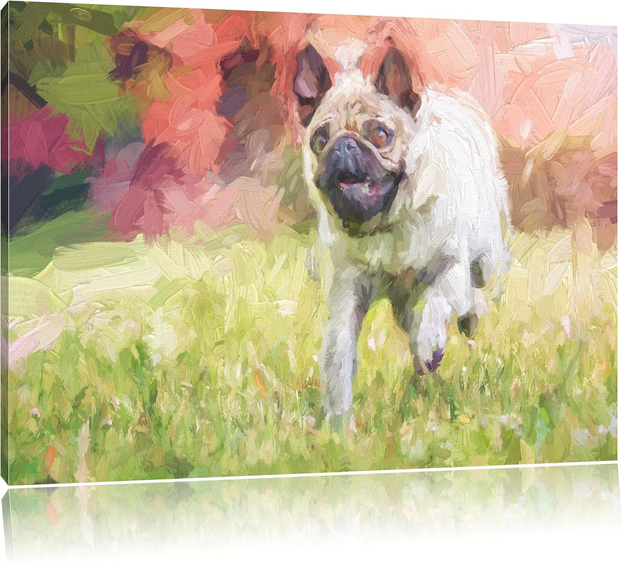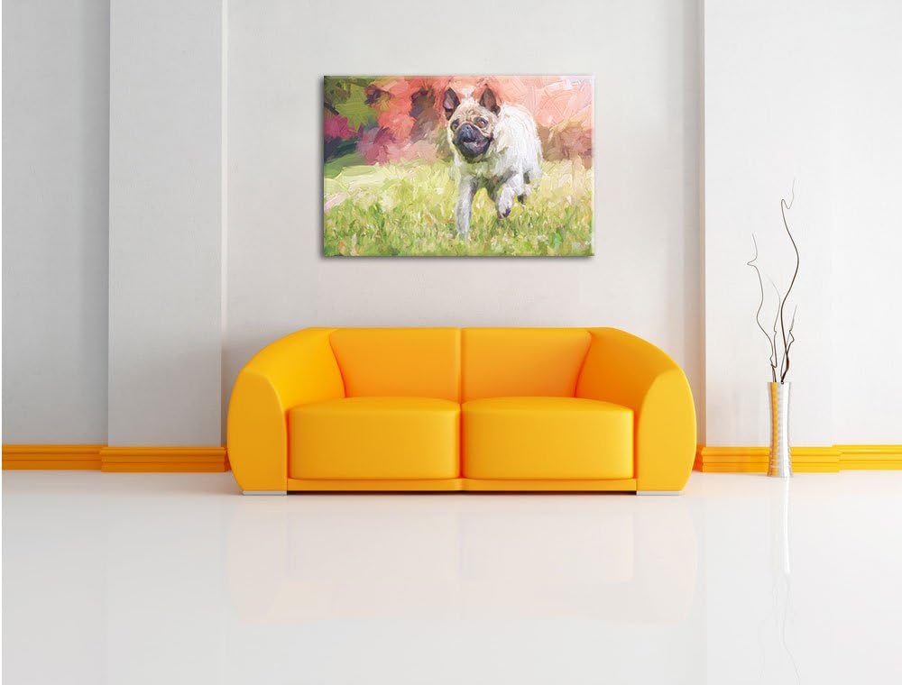 Pixxprint Rennender Mops Kunst / 100x70cm Leinwandbild bespannt auf Holzrahmen/Wandbild Kunstdruck D