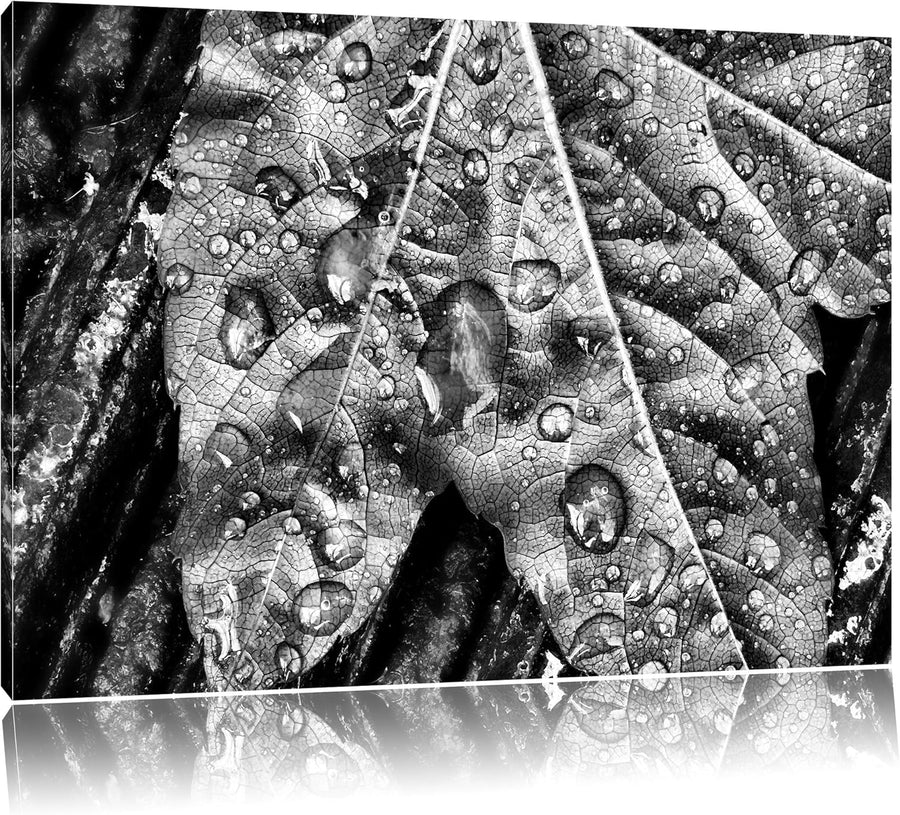 Pixxprint Regentropfen auf Blatt als Leinwandbild/Grösse: 100x70 / Wandbild/Kunstdruck/fertig bespan
