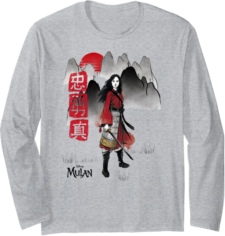 Disney Mulan Live Action Watercolor Mountain Portrait Langarmshirt