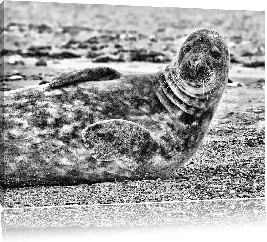 Pixxprint Robbe an Kiesstrand / 100x70cm Leinwandbild bespannt auf Holzrahmen/Wandbild Kunstdruck De