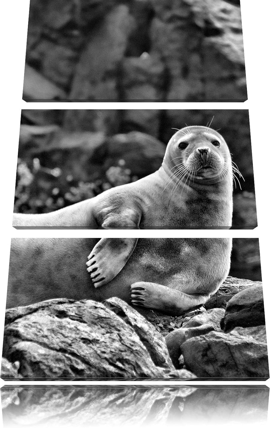 Pixxprint Robbe entspannt auf Felsen als Leinwandbild/Grösse: 3 Teilig (120x80) cm/Wandbild/Kunstdru