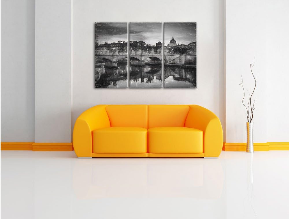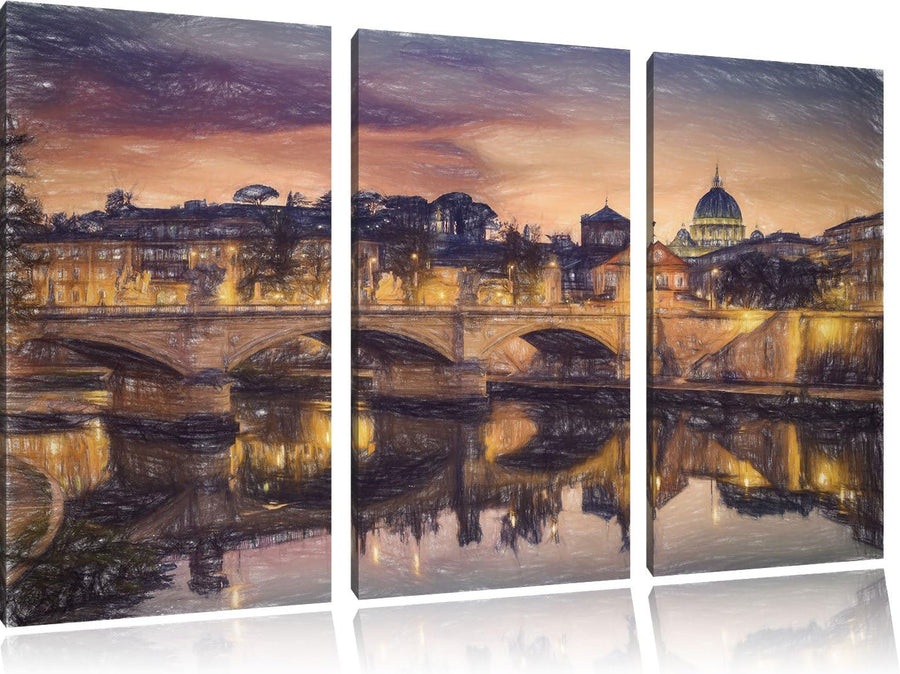 Pixxprint Rom an der Tiber in Richtung Kathedrale St. Peter Kunst Pinsel Effekt 3-Teiler Leinwandbil
