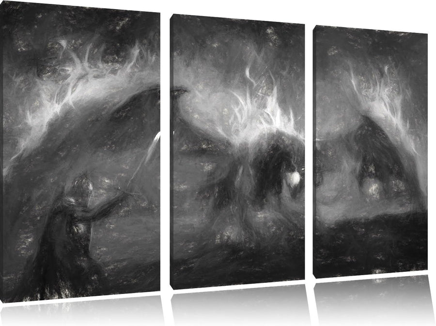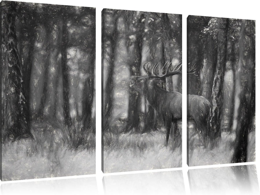 Pixxprint röhrender Hirsch im Wald als Leinwandbild | Grösse: 3 Teilig (120x80) | Wandbild| Kunstdru
