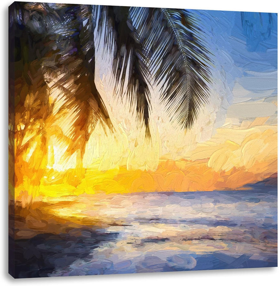 Pixxprint Romantischer Karibikstrand Pinsel Effekt, Format: 70x70 auf Leinwand, 70x70