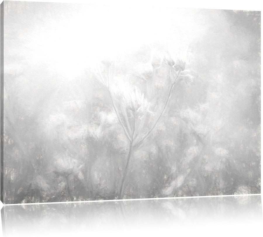Pixxprint Romantische Blumenwiese Schwarz/Weiss als Leinwandbild/Grösse: 100x70 / Wandbild/Kunstdruc