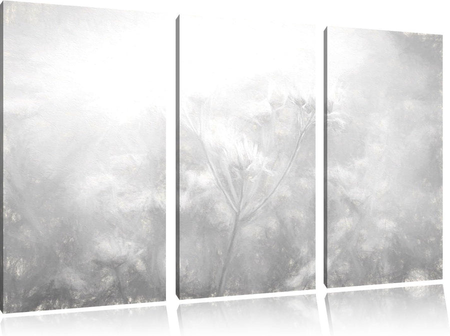Pixxprint Romantische Pusteblumen Pinsel Effekt 3-Teiler Leinwandbild 120x80 Bild auf Leinwand
