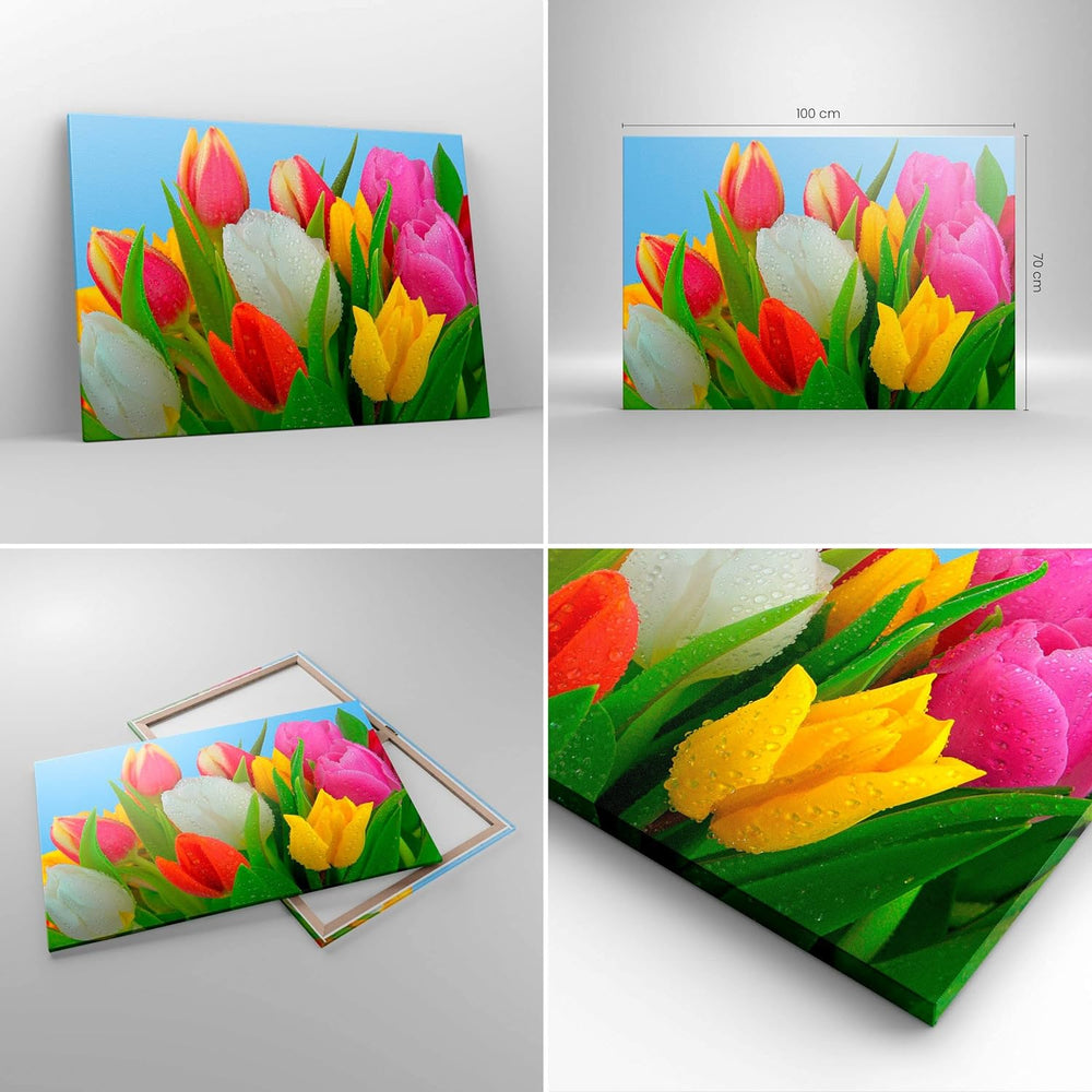 Bilder auf Leinwand 100x70cm Leinwandbild Tulpen Blumenstrauss Tau Tropfen Gross Wanddeko Bild Schla