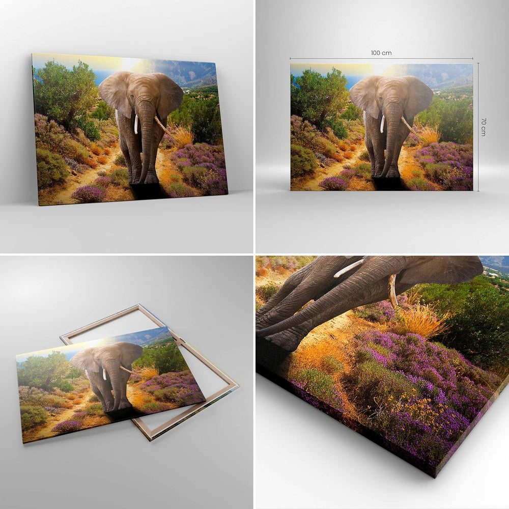 Bilder auf Leinwand 100x70cm Leinwandbild Tiere Afrika Elefanten Spaziergang Gross Wanddeko Bild Sch