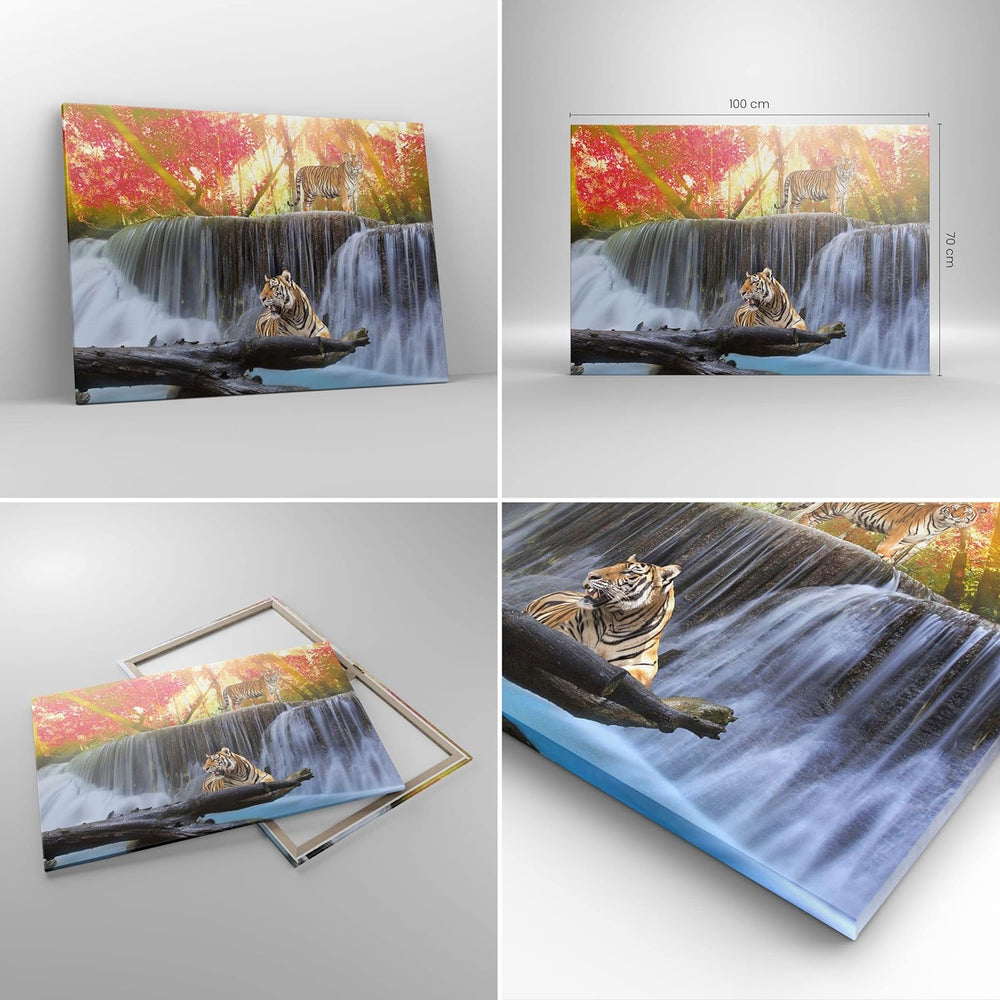 Bilder auf Leinwand 100x70cm Leinwandbild Tiger natur tier paradies Gross Wanddeko Bild Schlafzimmer