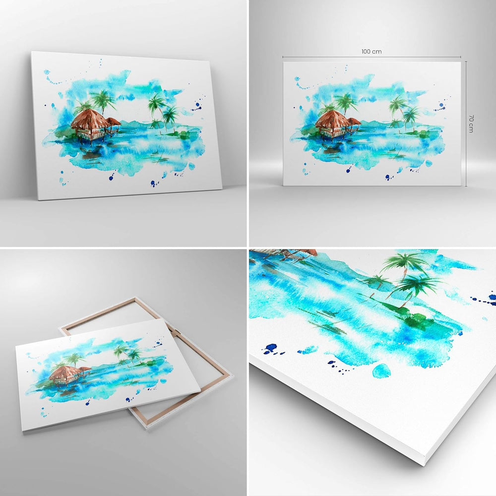 Bilder auf Leinwand 100x70cm Leinwandbild Tropen Wasser Bungalow Ufer Gross Wanddeko Bild Schlafzimm