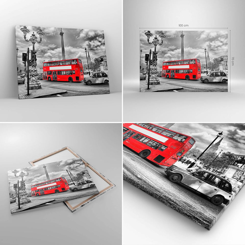 Bilder auf Leinwand 100x70cm Leinwandbild Trafalgar Platz Taxi London Gross Wanddeko Bild Schlafzimm