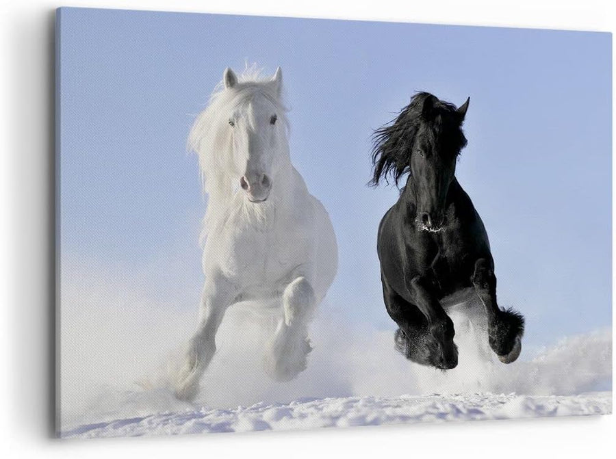 Bilder auf Leinwand 100x70cm Leinwandbild Tiere Pferd Galopp Geschwindigkeit Gross Wanddeko Bild Sch