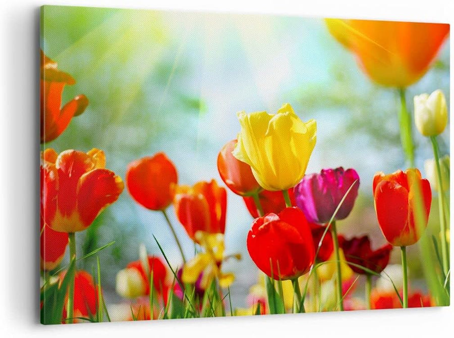 Bilder auf Leinwand 100x70cm Leinwandbild Tulpen Blume Pflanzung Pflanze Gross Wanddeko Bild Schlafz