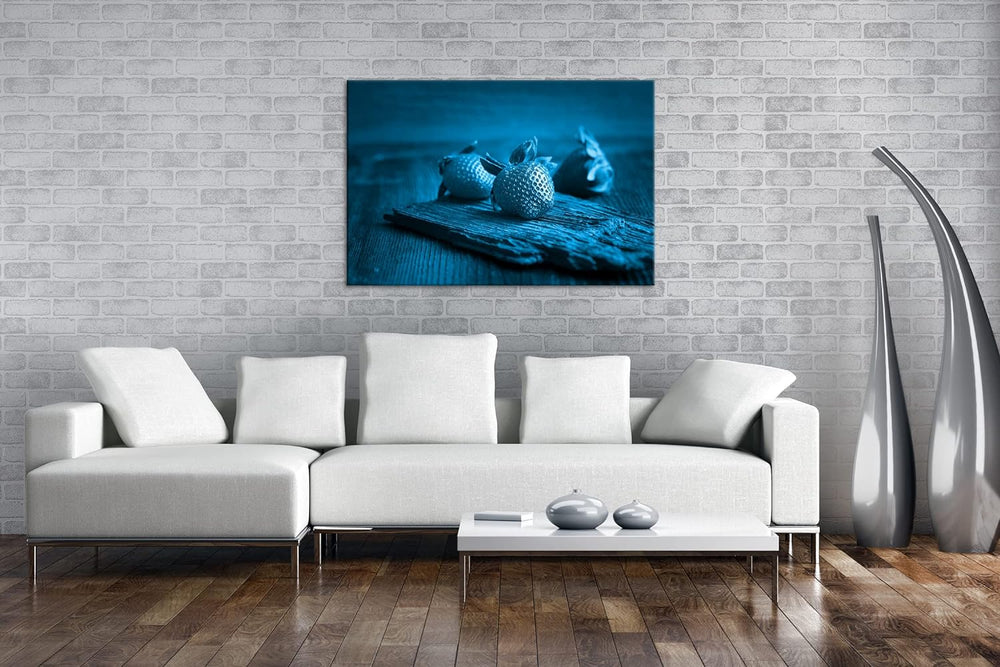 deyoli drei appetitliche Erdbeeren Format 80x60 Effekt: Monocrome Blau als Leinwandbild, Motiv ferti