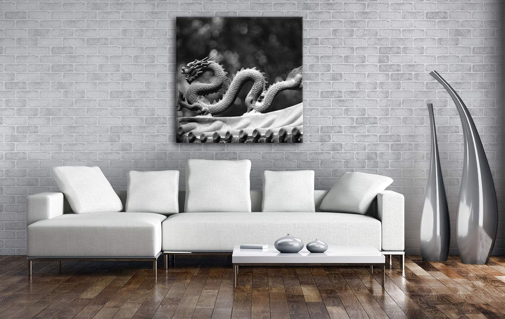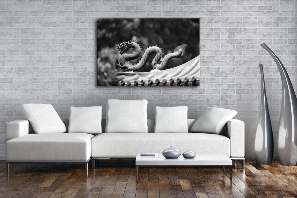 deyoli Drachenfigur Format: 80x60 Effekt: Schwarz/Weiss als Leinwandbild Motiv fertig gerahmt auf Ec
